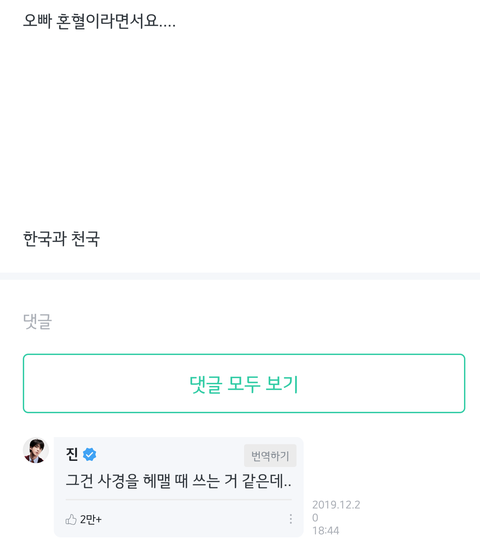 .플랫폼 '위버스'와 네이버 브이라이브에서 방영되는 '달려라 방탄'의 출연진인 방탄소년단 멤버 rm, 진 t1 리그 오브 레전드 팀이 출연하는 '달려라 방탄' 에피소드는 11월 3일과 10일에 방영될 예정이다. 땡 걍 랩퍼, 땡 방탄 = 땡 but 현실, bang worldwide, bang 차트 위 bang bang, 땡 got money, woo ap, woo 좋은 집, woo 누군가의 dream life, woo how 'bout you, uh i like you, uh 이 성공, uh 네 덕분, uh. '음악중심' 스페셜 mc 방탄 정국x지민, 사랑스런 경상도 남자들 (종합). » 위버스 방탄 뷔.프로필프사를 바꾸고싶었지만 이름을바꿨다 17. 유머 위버스 방탄 뷔.프로필프사를 바꾸고싶었지만 이름을바꿨다.